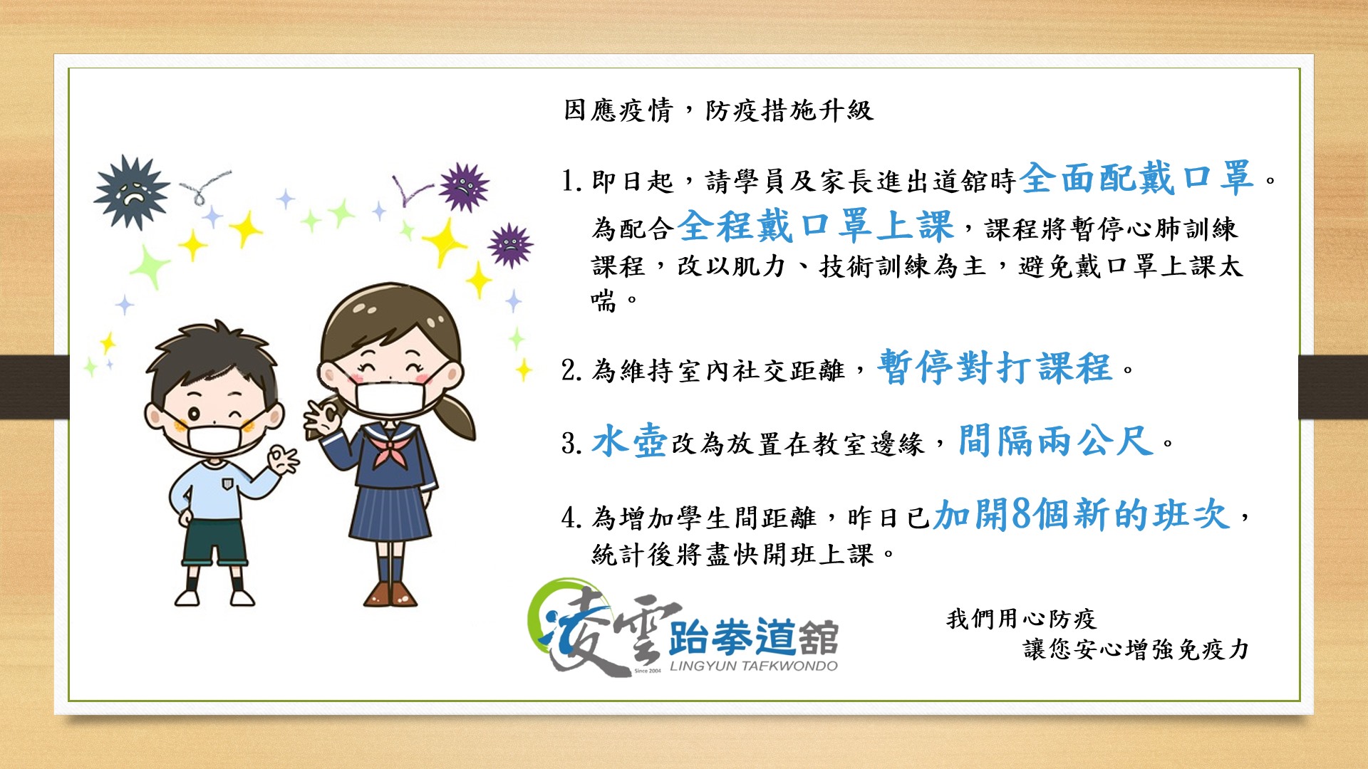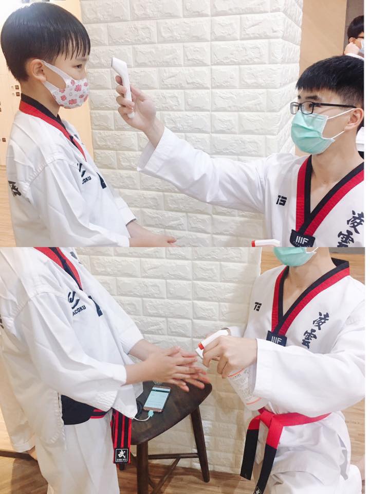 為進入道館的每一位家長或學員量體溫、乾洗手🧴