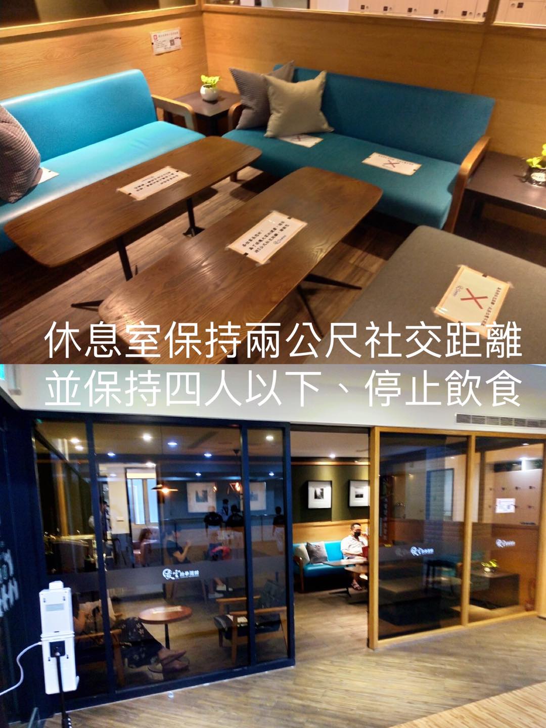 休息室保持四人以下並停止飲食、停止供應飲用水、小點心